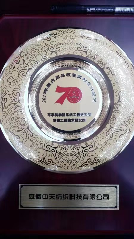 對(duì)安徽中天紡織科技股份有限公司新型迷彩材料的高標(biāo)準(zhǔn)高質(zhì)量保障給予高度評(píng)價(jià)。會(huì)議授予各企業(yè)紀(jì)念牌,以示表彰。
